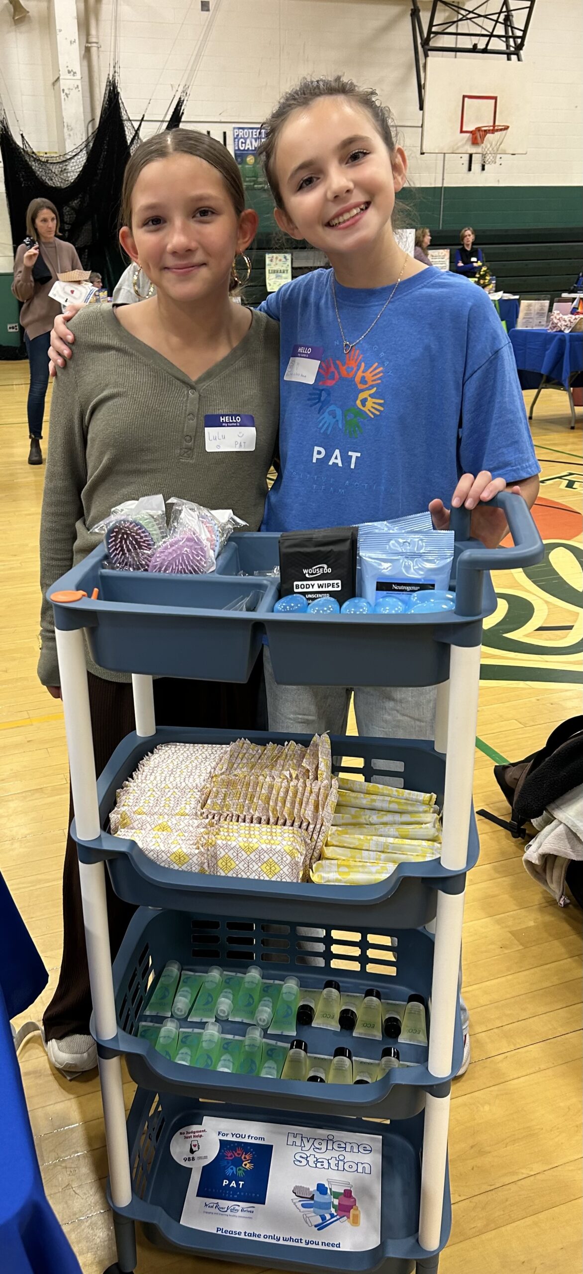 The Positive Action Team (PAT) Hygiene Stations provide students with free, easily accessible personal care items right at school. Stocked with essentials like deodorant, toothpaste, toothbrushes, period products, hair ties, body wash, and other daily-use items, these stations ensure that every student has what they need to feel clean, confident, and ready to learn.